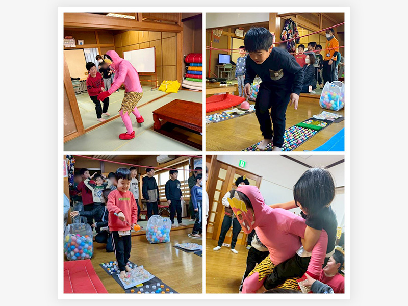 本日の活動は【相撲の日】です😜 みんなで相撲の準備体操“股割り”を行い、しっかりと体をほぐしました💪 そして今日は節分です!! ハッケヨイ!に赤い鬼が登場しました!!🤣 子どもたちは力を合わせて、「えいっ!」と元気いっぱ …