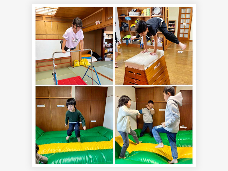 トランポリンだけでは物足りないメンバーは、鉄棒や跳び箱にも挑戦💪